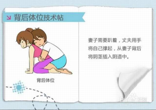 此方式是男性从后面插入女性阴道,女性朋友可以采取双手伏地,臀部稍微的翘起,这不仅利于性交的完成,同时,还可以使精子接近子宫颈,有助于快速的受精成功。当然,姿势不是固定死的,无论躺下还是跪着都可以,根据个人喜好选择即可。
